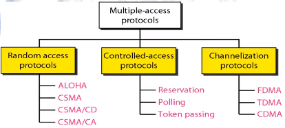 - lower sublayer : resolving access to the shared media (multiple-access resolution)