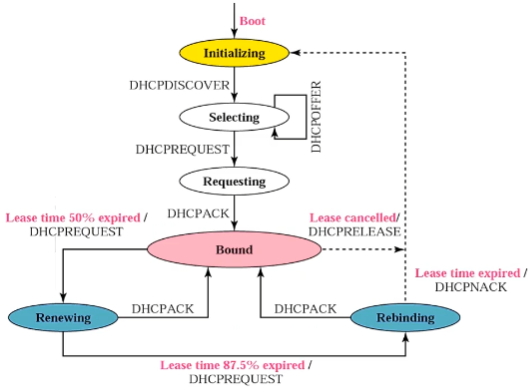 3) 남아있는 IP 유효시간의 50% 도달시 서버에 DHCP request 를 다시보내 renewing(갱신)