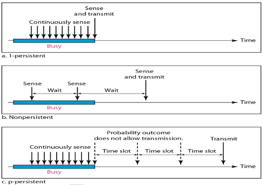 2) Nonpersistent : 일정 간격으로 확인(sense)하여 idel 이면 보냄