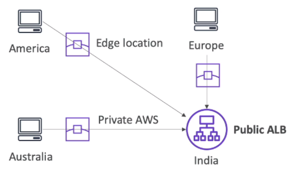 client는 public internet 대신 edge location을 통하여 AWS internal network 로 app에 접근