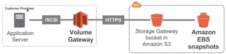 - Storage Gateway : File Gateway, Volume Gateway (cache & stored), Tape Gateway