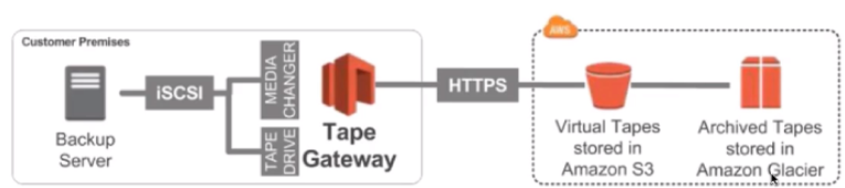 - Virtual Tape Library (VTL) backed by Amazon S3 and Glacier