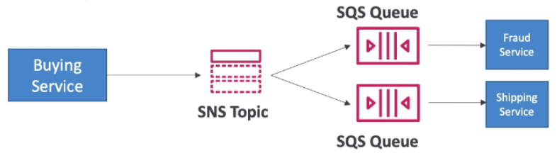 - Push once in SNS, receive in all SQS queues that are subscribers