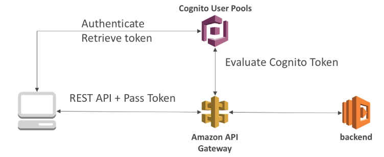 - API gateway verifies identity automatically from AWS Cognito