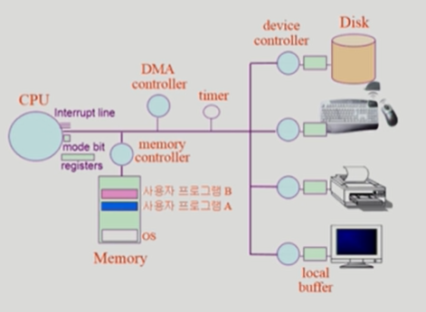 Device Controller (장치제어기) : 각 장치를 통제하는 일종의 작은 CPU (hardware)