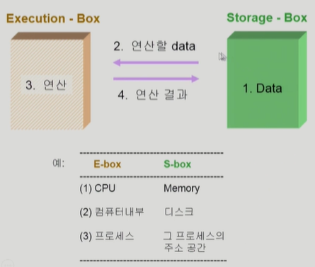 S-box(memory address space)를 공유하는 E-box(CPU process)가 여럿 있는 경우,