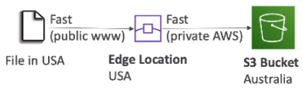 - Increase transfer speed by transferring file to an AWS edge location which will forward the data to the S3 bucket in the target region