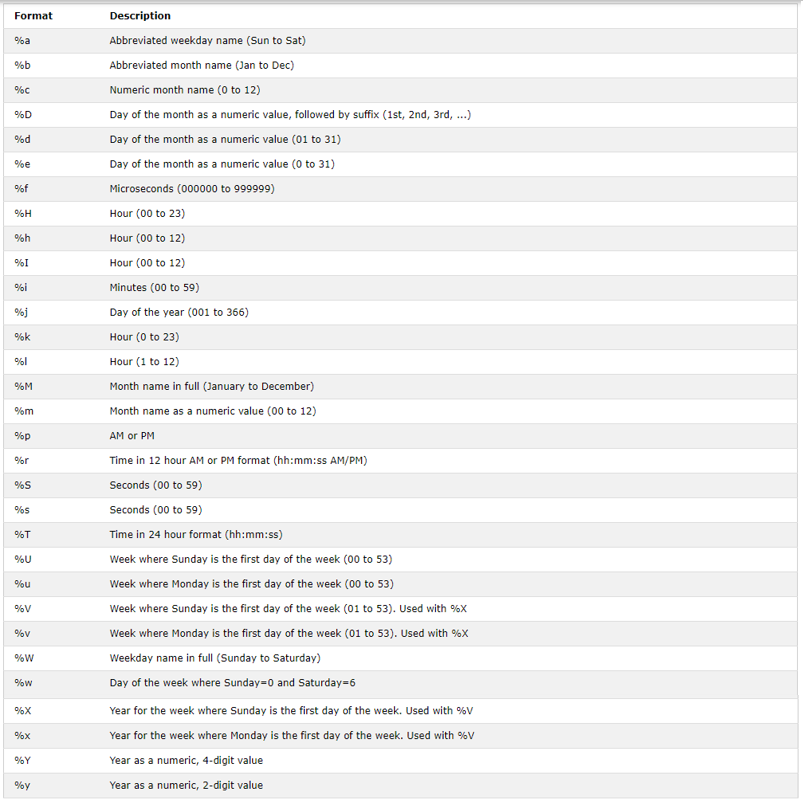 1. mysql (출처 : https://www.w3schools.com/sql/func_mysql_date_format.asp)