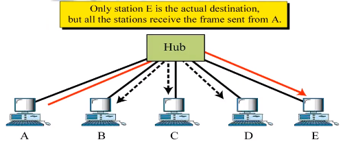 - 일반 Hub는 하나의 station 에서 데이터를 전송할 때 모든 station 에 데이터를 전송