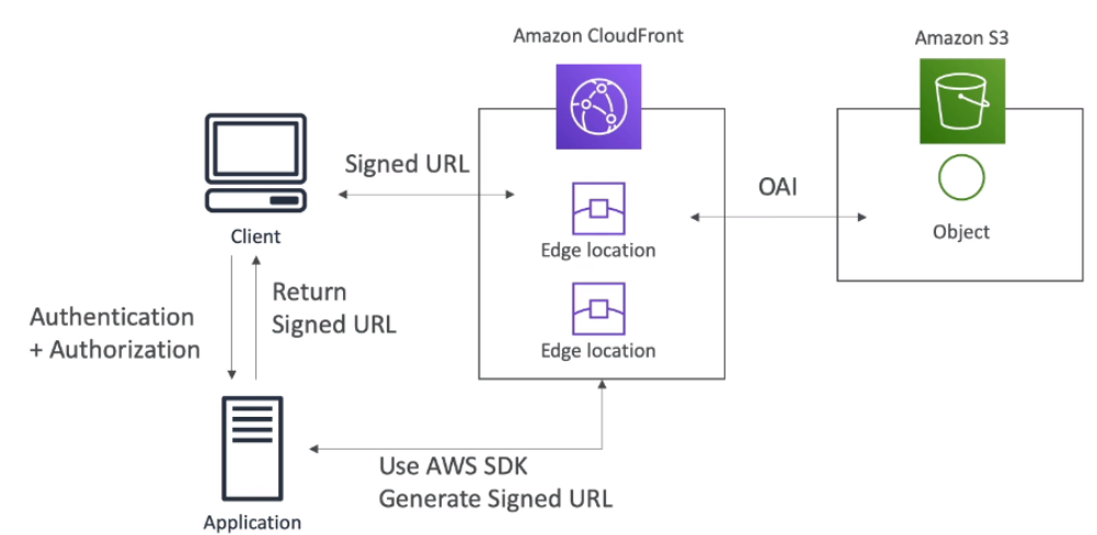 3. Client 는 Signed URL 을 통해 CloudFront -> S3 Object 에 접근