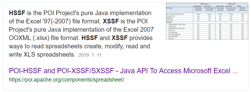XSSF : .xls 및 .xlsx 파일 포맷을 위한 POI