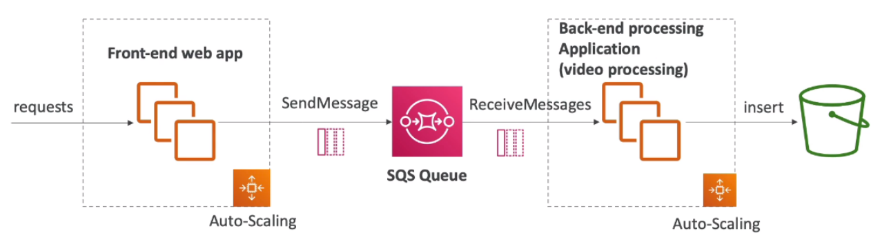 - Fully managed service, used to decouple applications